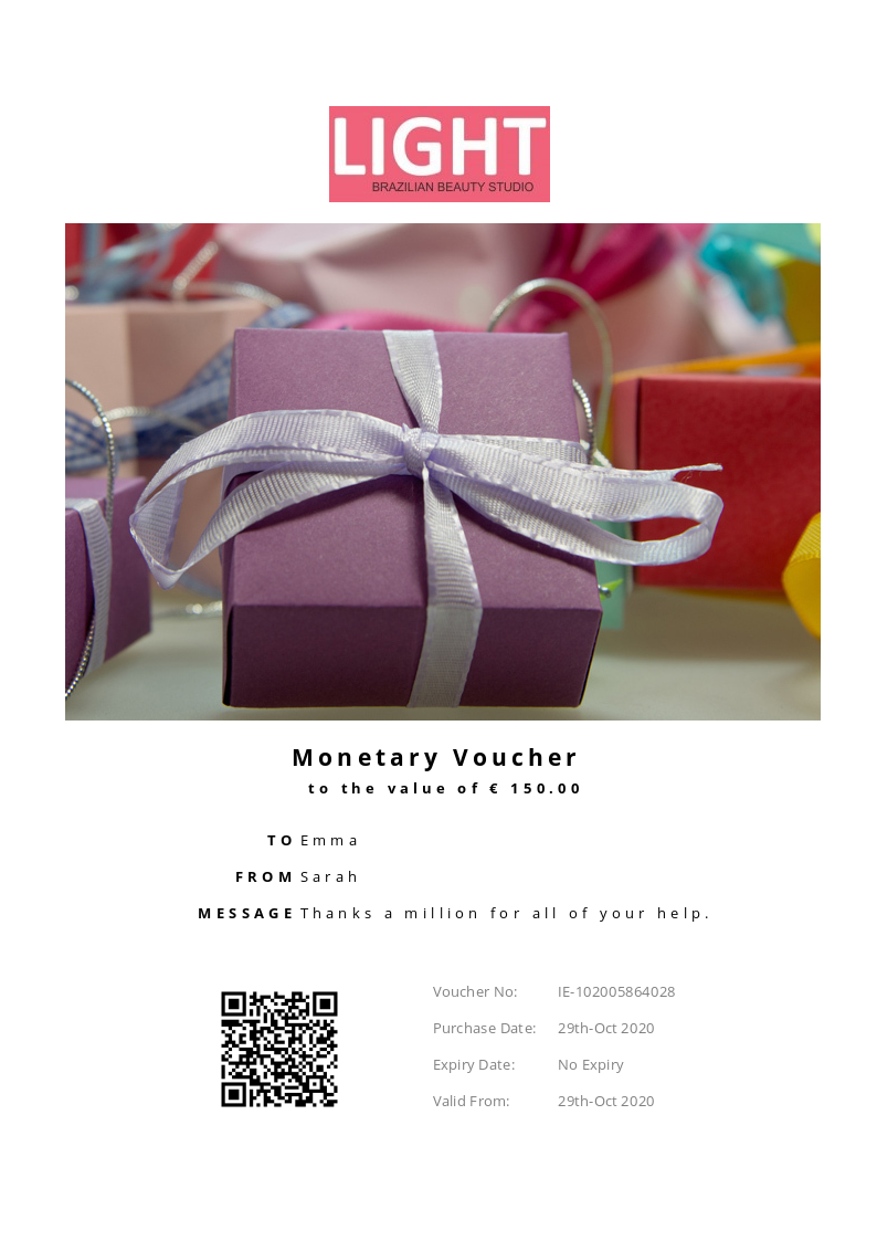 LIGHT - Brazilian Beauty Studio allows you to purchase instantly printable gift vouchers, special offers and tickets using the Voucher Connect platform.
